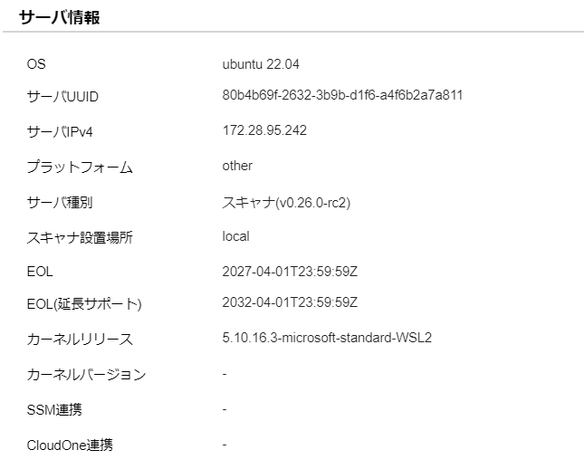 リモートスキャンの場合、 OS やサーバ IPv4 にはスキャン対象サーバから取得された値が表示されます。